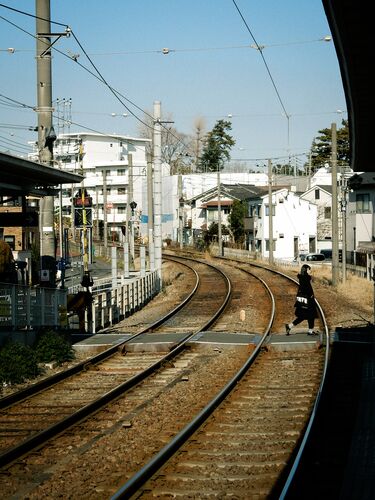 のんびりと線路を横切り向こうまで、そんなゆったりした感じが好き。 横切る 線路が急カーブしている風景が綺麗だと思い撮りました。望遠レンズの圧縮効果を使って曲がりを強調しているのではなく、ここは本当に急なカーブです。東急世田谷線のオモチャのよ…
