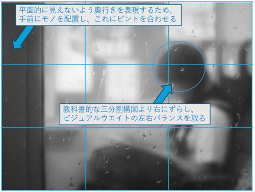 太平洋側は乾燥していますが、日本海側は降水量が増えていますね。 教科書通りに撮らず、敢えて三分割構図を崩して撮っています。 この写真は、左の窓枠を大事にして構図を作っています。これがあることにより、奥行き感のある写真になっています。(試しに…