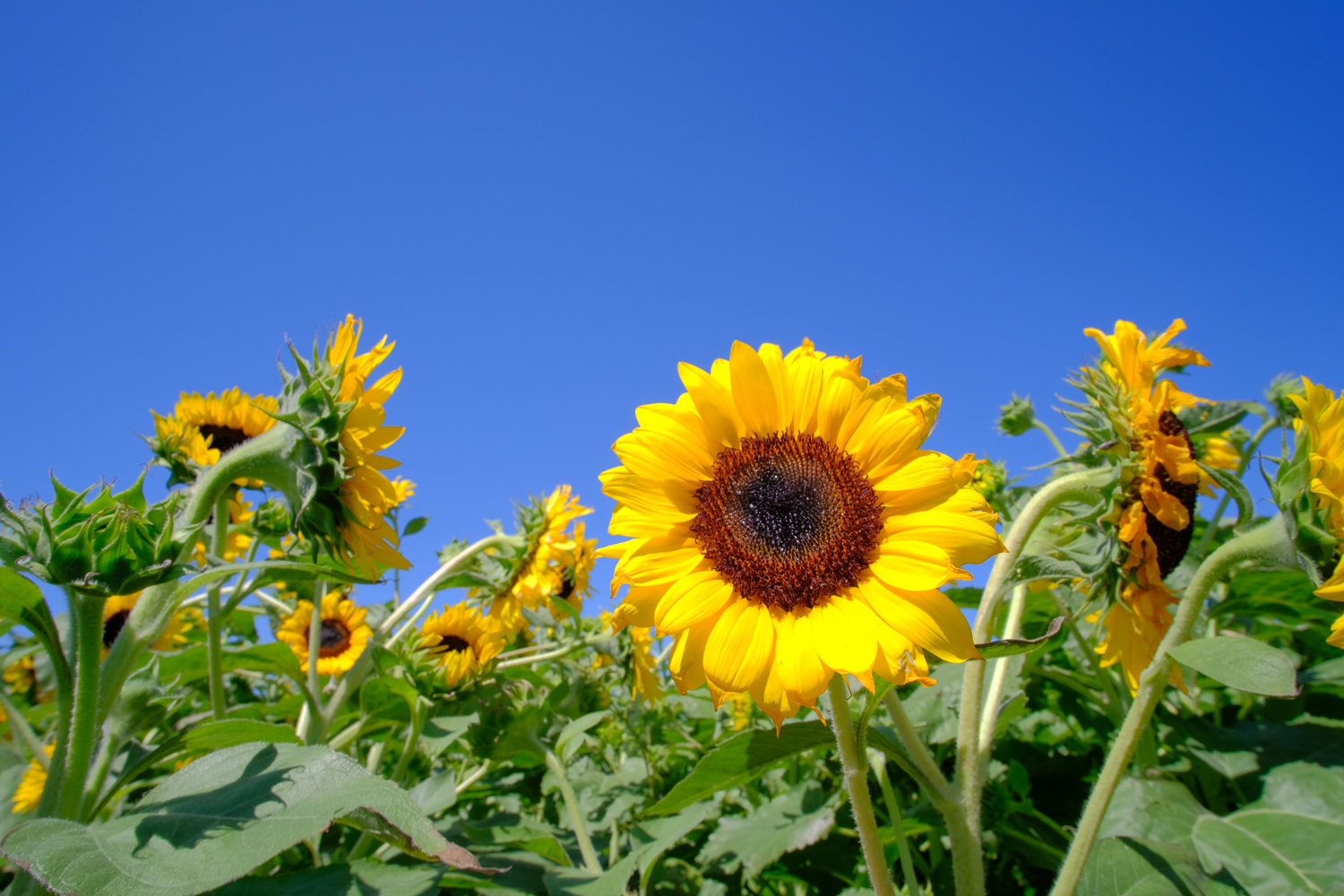 ヒマワリのイメージは何でしょう? 夏、元気、力強さ等、ポジティブなイメージでしょうね。こういったイメージで写真を撮るなら、