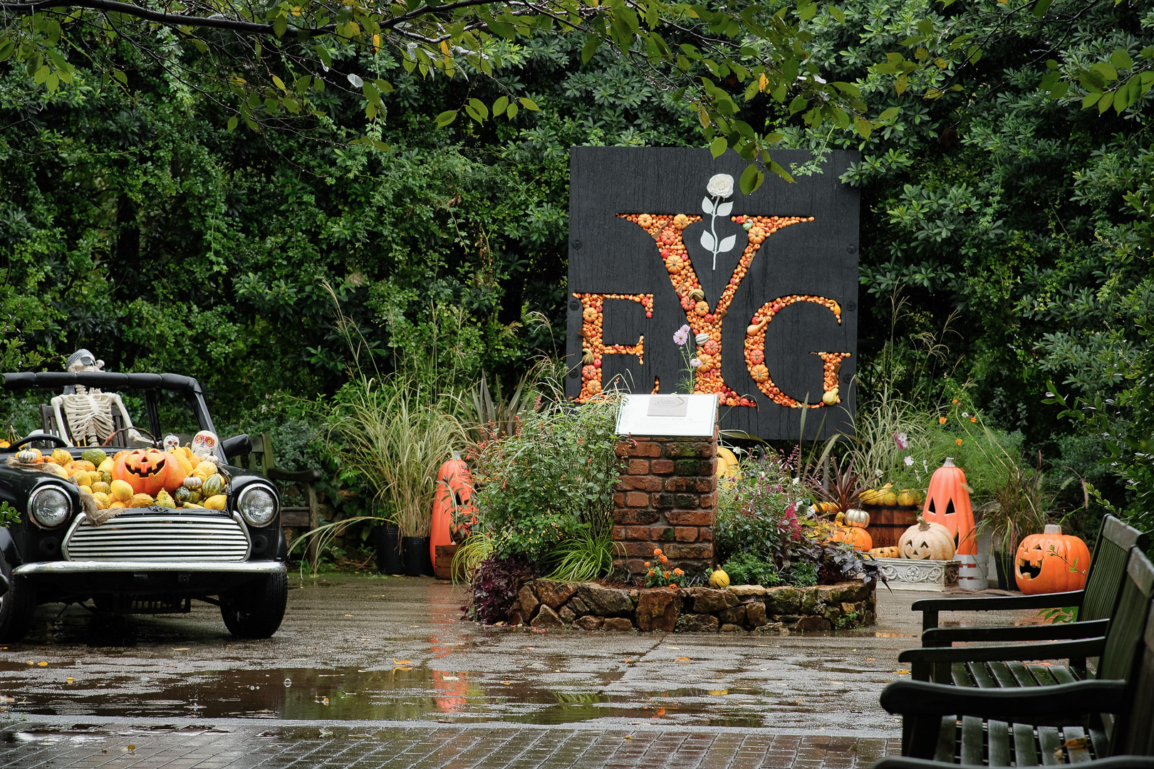 今の時期限定で、ハロウィーンデコレーションをしていて、これもなかなか見ごたえがありました。パンプキンヘッドのような小物だけでなく、コリウスなどの色々な植物と合わせていて、それがとても上手。こういう場所で、子供や犬の写真を撮ると良い思い出になりそうです。私が居た時は、仮装させた子供の写真を撮るお母さん方もいましたし、ゴスロリな服の女子も写真を撮って楽しんでいました。