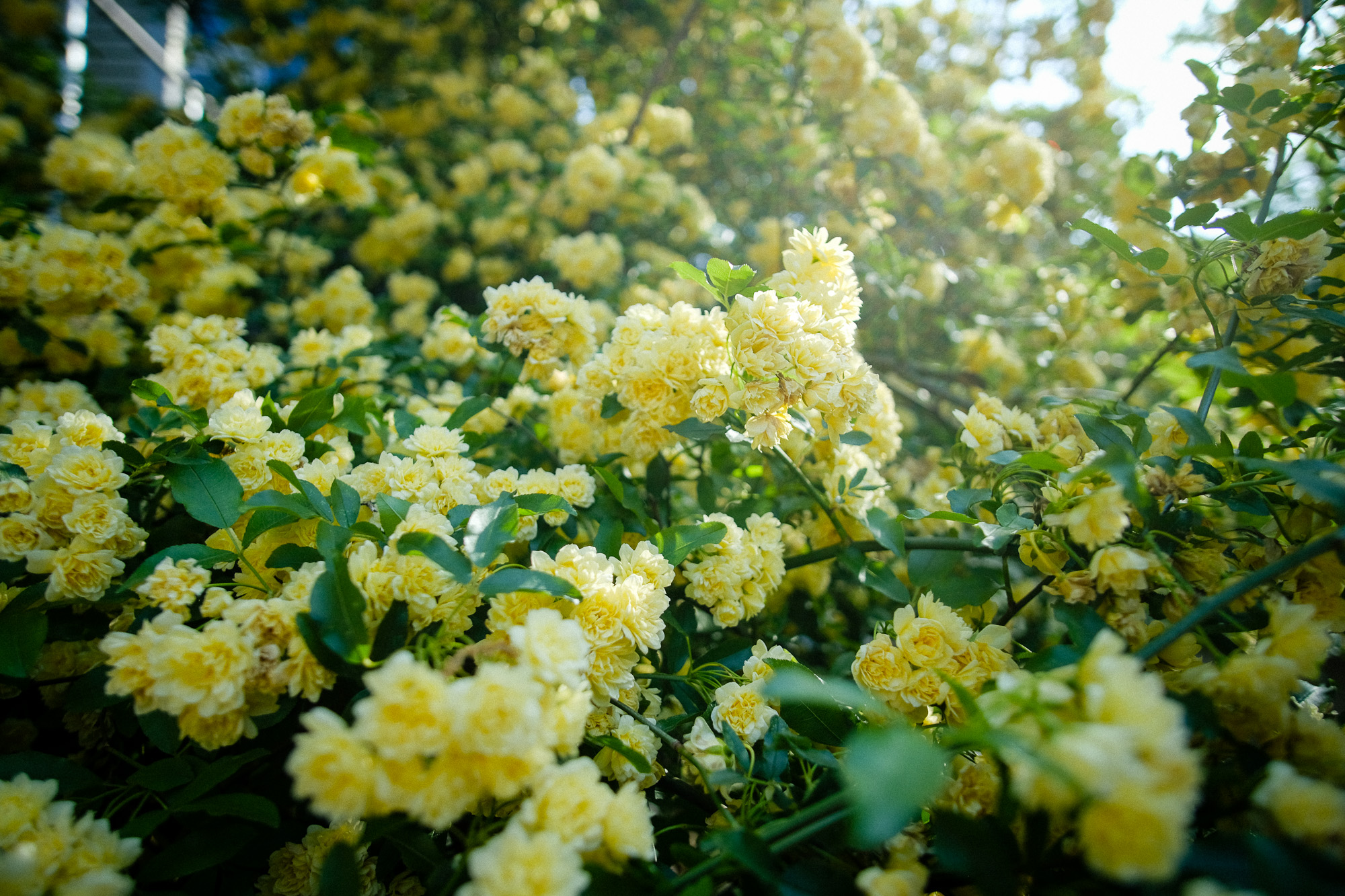 大きいものを大きく撮るのは難しい、そして広いものを広く撮るのも難しい。今回は、一面に広がるモッコウバラを広く撮る練習をしました。