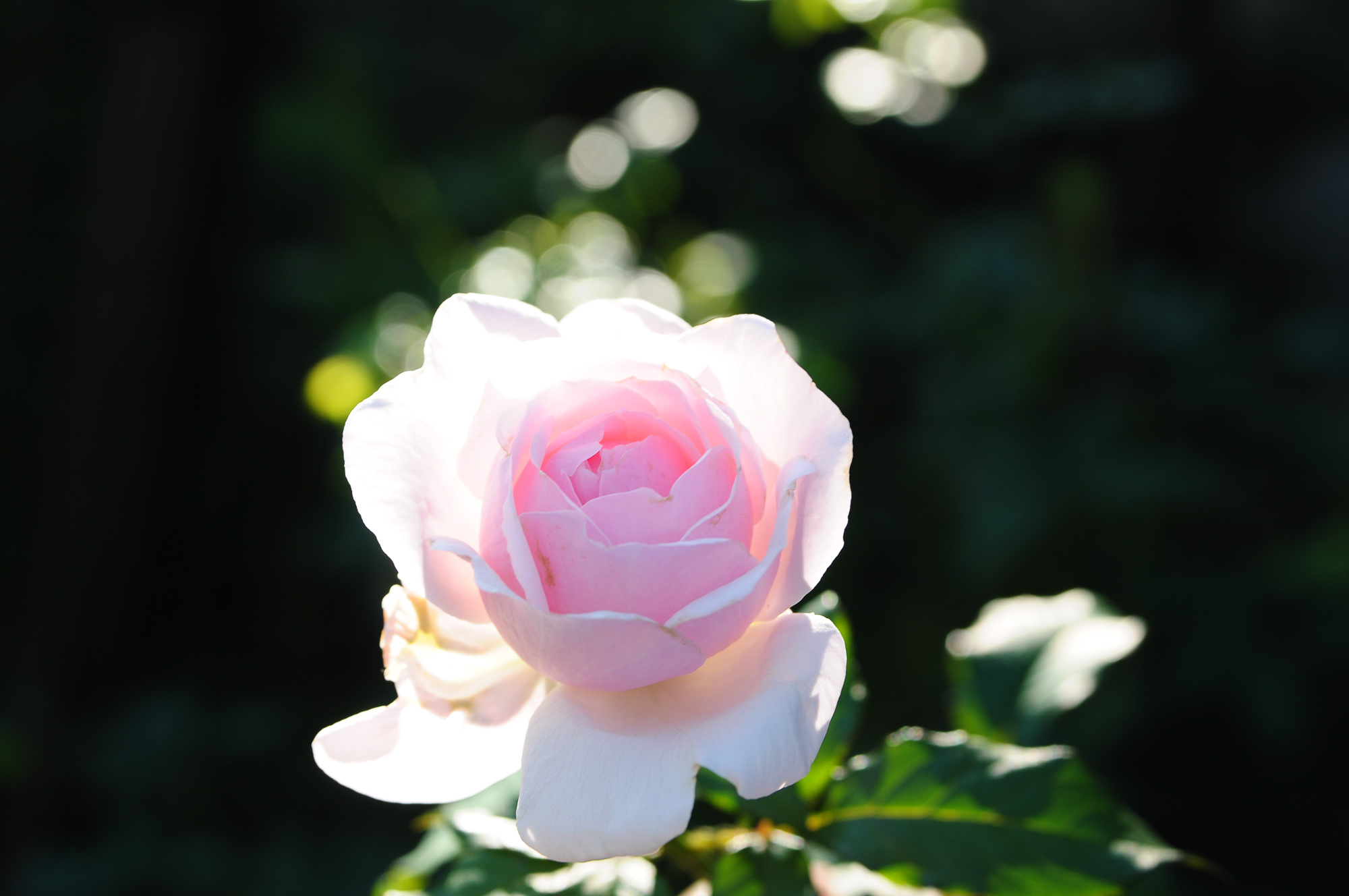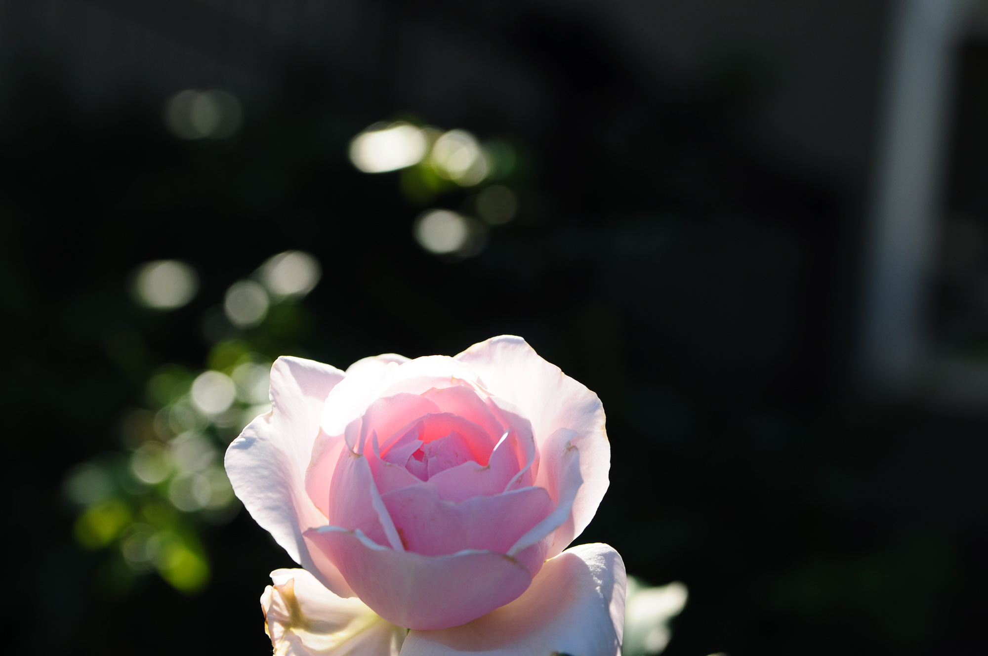 そこで、少し引いて撮ったのがこれです。花の葉が明るく写って、花が目立たなくなりました。ここで発見したことが一つ。花の後ろに明るい部分が少しあります、これを玉ボケにすると良い感じになる気がしました。