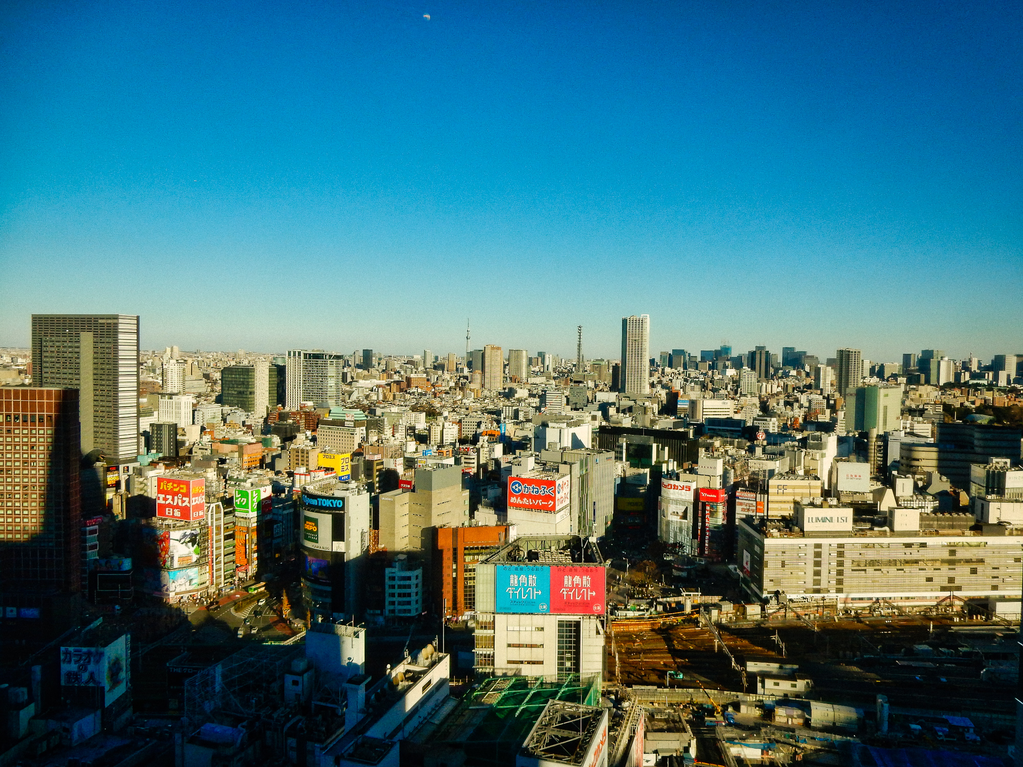下の写真は、ニコンショールームから撮った新宿の街。撮りたかったのは街ではなく、青・赤・茶の色でした。