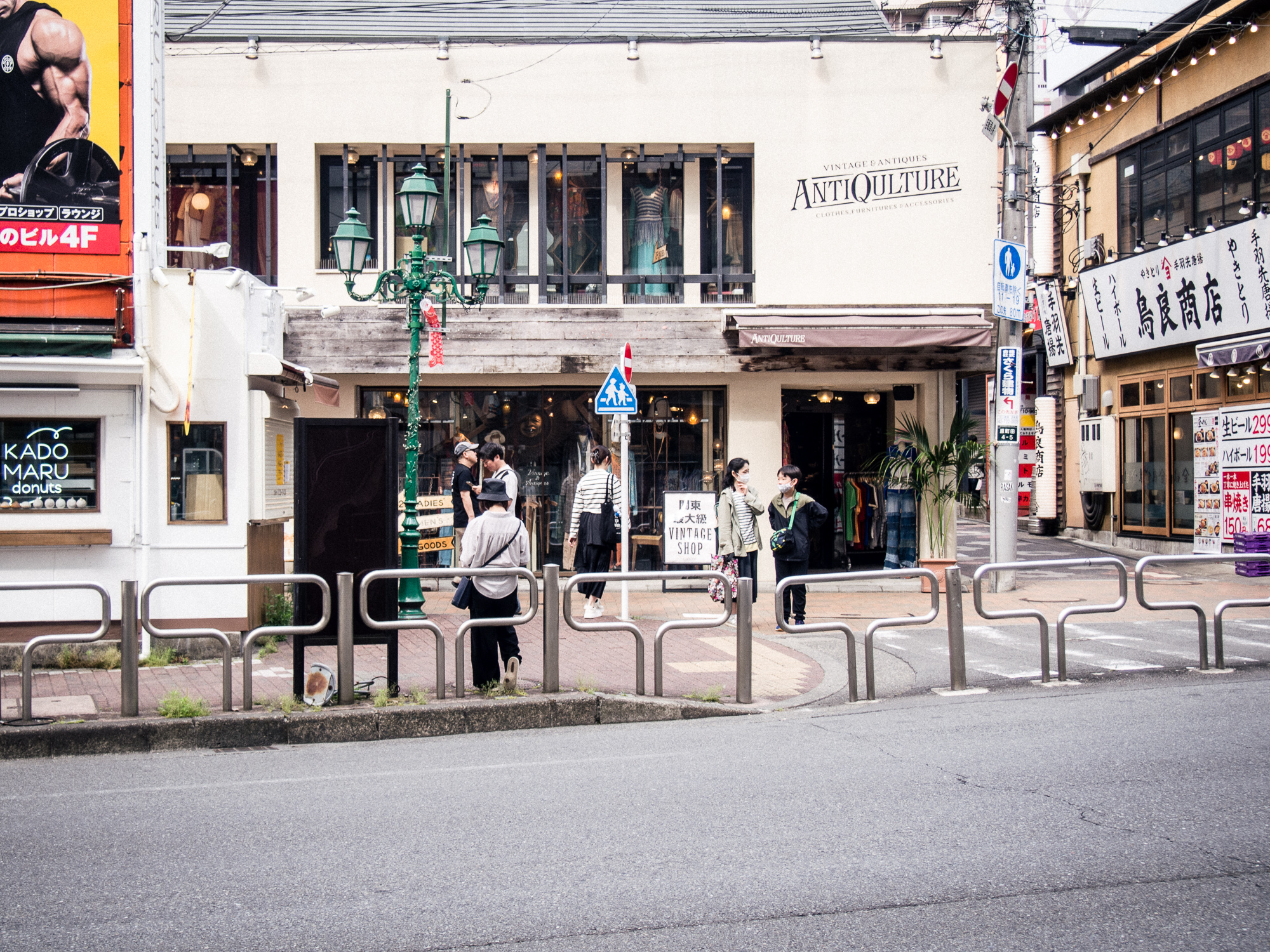 上の写真は、中央がデザインされたカッコいいお店なのに、左上と右が主張の強い俗っぽい看板があるのが面白いと思い撮りました。青山や表参道のようにカッコいい街なのではなく、もっと清濁が混在した街であることを撮りたかった。